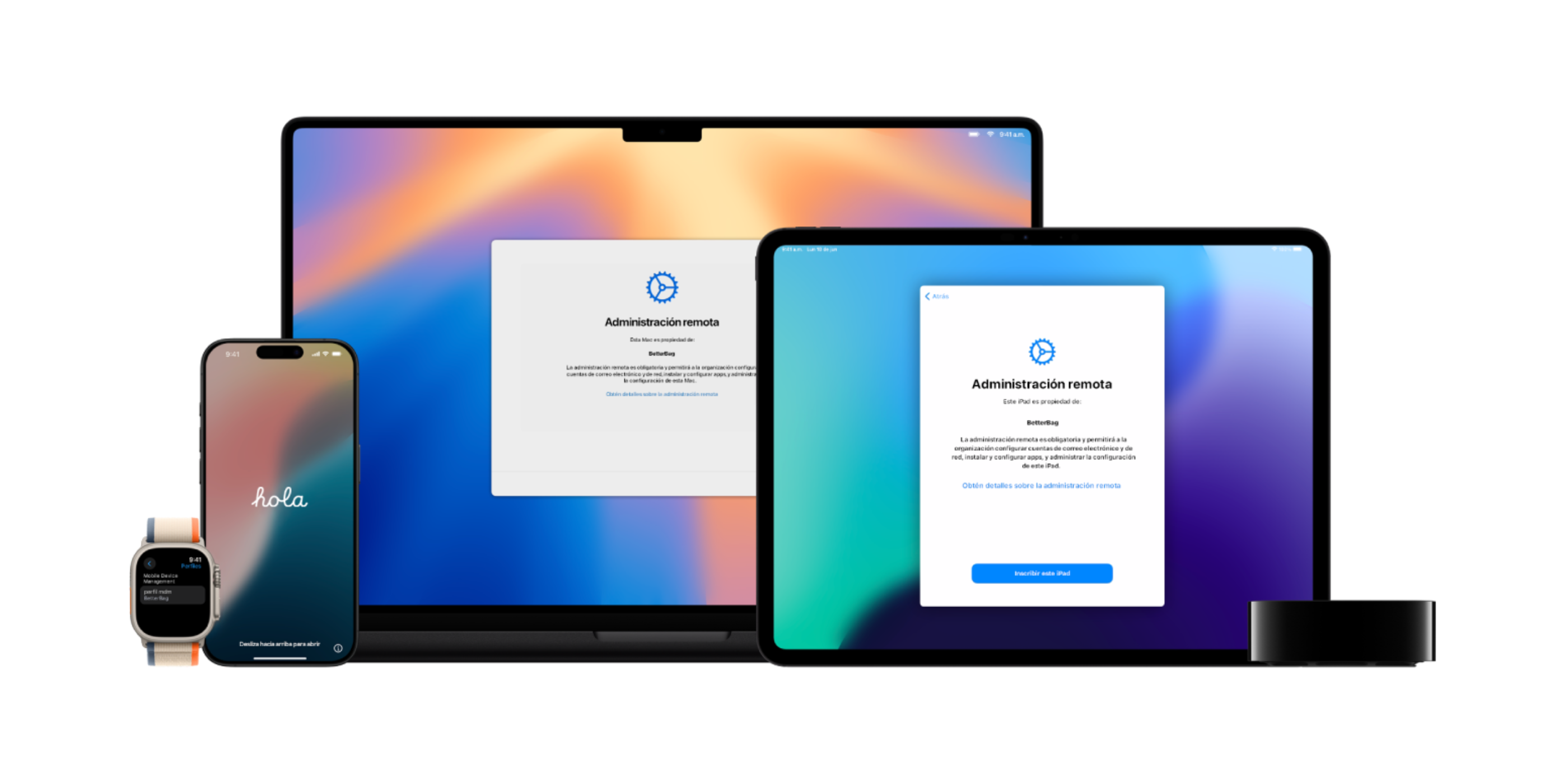 Centraliza la implementación y administración del ecosistema Apple en tu organización: dispositivos, software, apps y servicios.