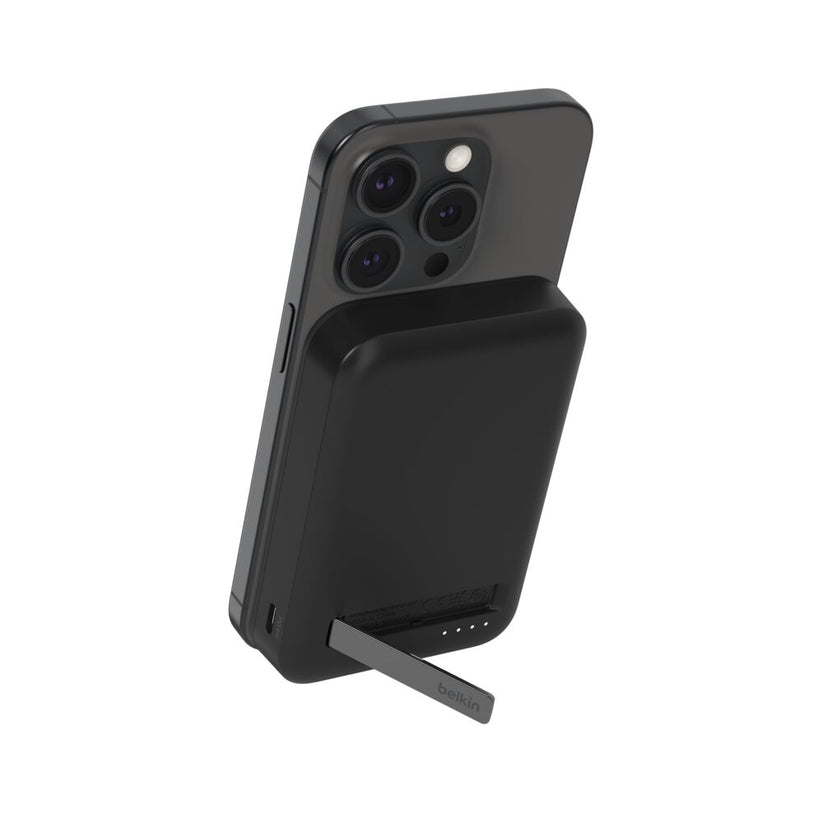 Carga de forma inalámbrica además de rápida y seguramente un iPhone y otros smartphones habilitados con la tecnología Qi2 con nuestra batería externa magnética 8K con Qi2 de 15 W BoostCharge Pro. Podrás cargar con hasta 15 W todos tus dispositivos compatibles con Qi2 y MagSafe, sobre la marcha en cualquier parte y con toda la facilidad. Además, podrás ver vídeo, hacer streaming o crear contenido disfrutando del ángulo perfecto de visualización gracias al soporte caballete integrado (incluso al mismo tiempo que cargas el dispositivo).