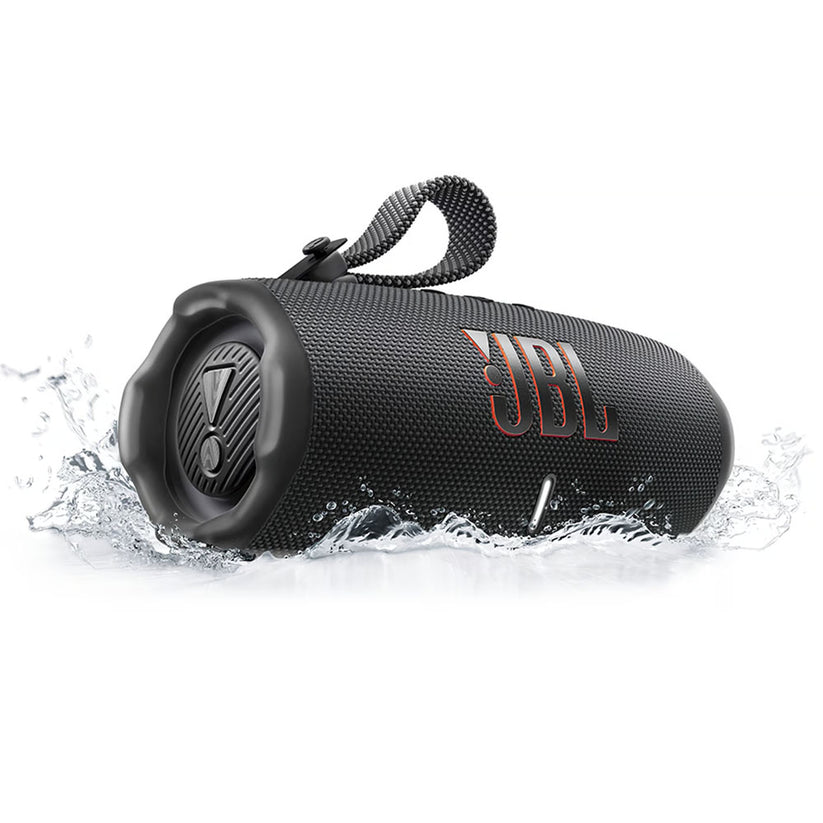 Un altavoz portátil resistente al agua y las caídas con el impactante sonido Pro de JBL y una correa de asa desmontable.