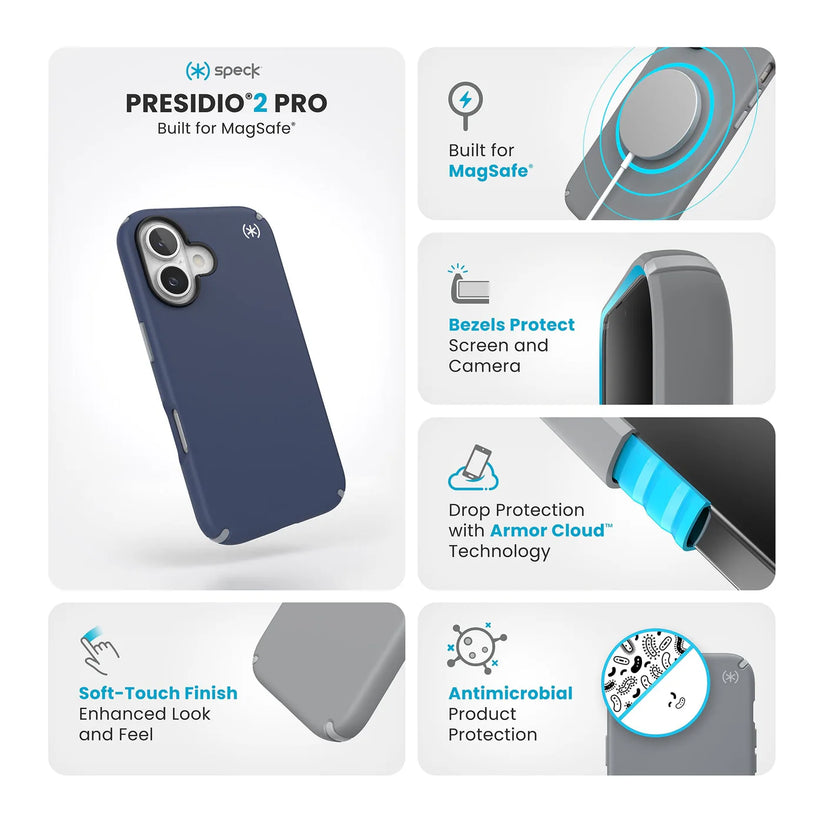 Speck Presidio2 Case con Magsafe para iPhone 16 Plus - Azul