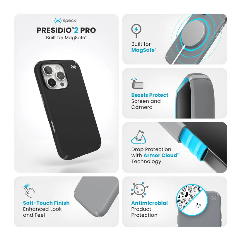 Speck Presidio2 Case con Magsafe para iPhone 16 Pro Negro